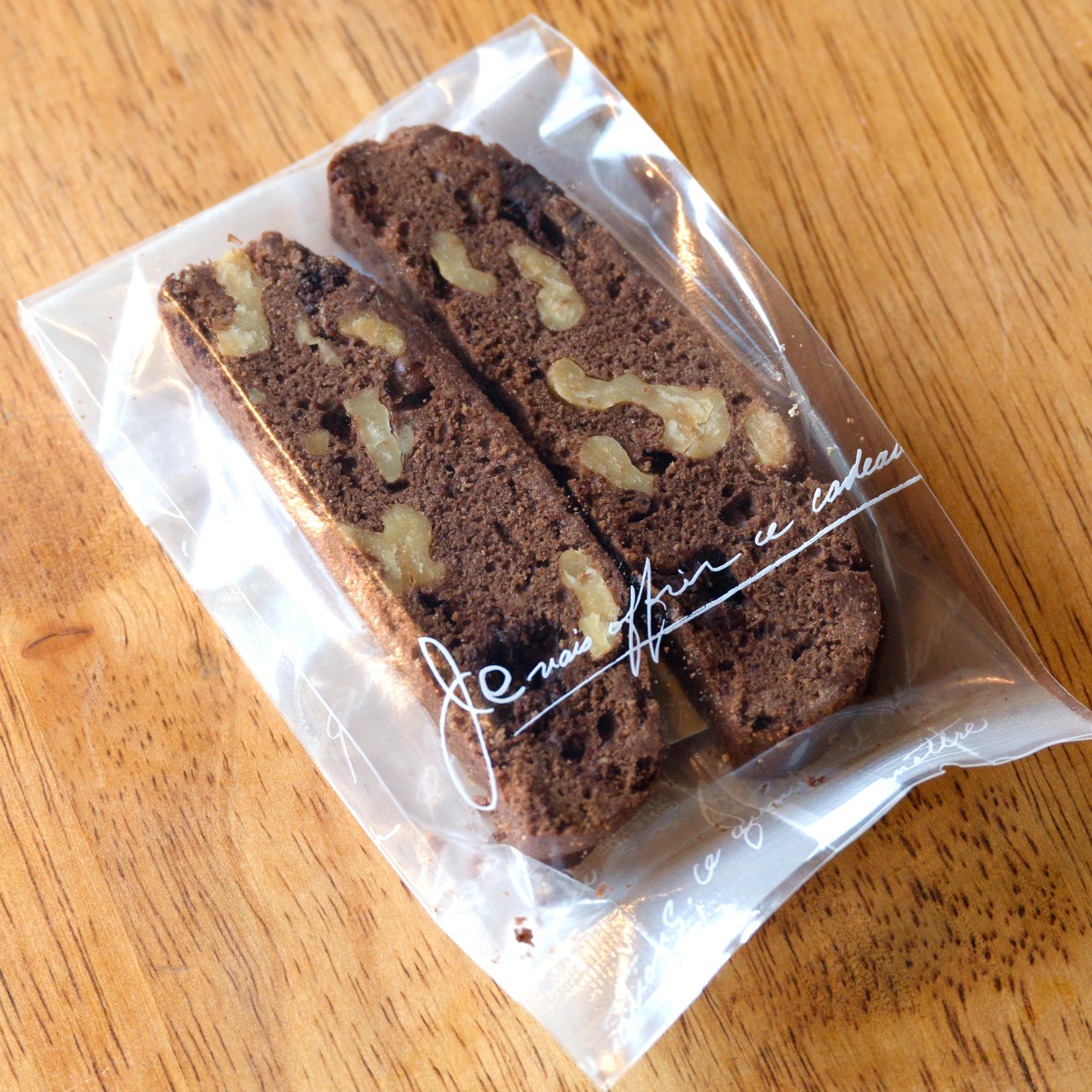 (チョコレートくるみ):アーモンド、くるみ、小麦、きび砂糖、オリーブオイル、卵、